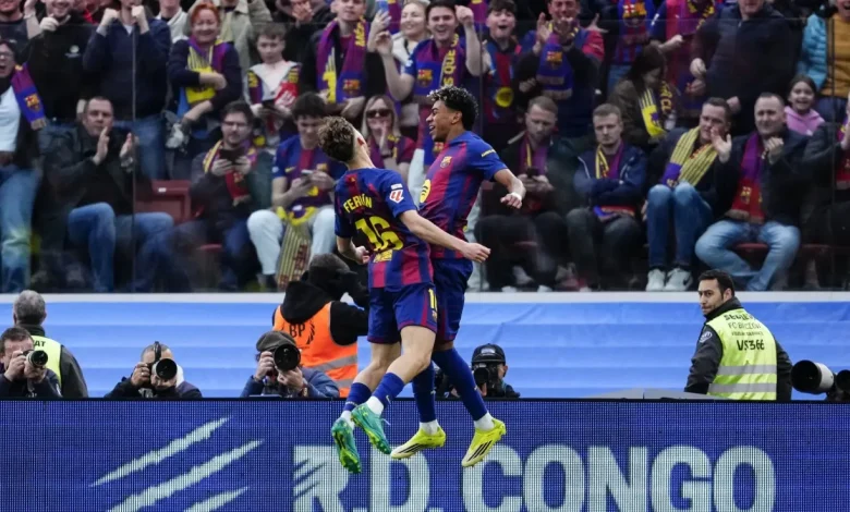 وسجل برشلونة هدف التقدم عن طريق طريق لامين يامال في الدقيقة 28 من صناعة فيرمين، ثم عاد لامين يامال وسجل هدف ثاني بتسديدة رائعة من داخل منطقة الجزاء من صناعة فيرمين.